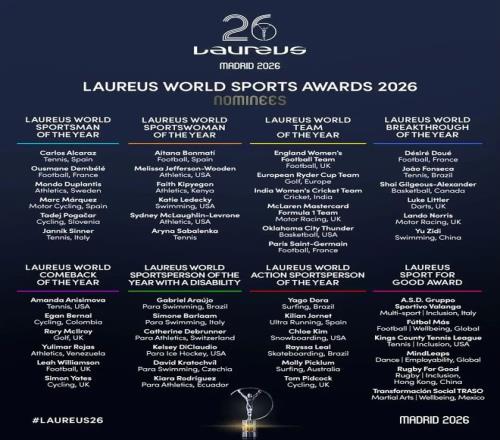 3月3日,2026年勞倫斯世界體育獎評選提名名單公布。
