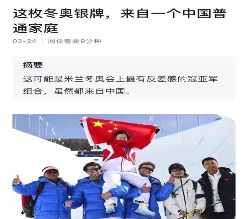 (文章《這枚冬奧銀牌,來(lái)自一個(gè)中國(guó)普通家庭》)