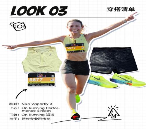 此外,她還給周日參賽的其他女生們一個小建議:“穿搭盡量選擇自己試過、信得過的裝備,比賽日不是嘗試新品的好時機;以及顏色盡量選擇鮮艷一點,這樣跑起來心情不僅會變好,賽道攝影師也會更愛給你特寫哦?!?/p>