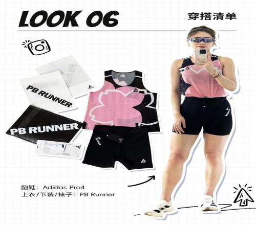 聊到穿搭,她表示自己最大的跑步動力就是穿好看的裝備,以前每次PB她都會給自己獎勵一件精英裝備——入一些不太會撞衫的款式(或者新款)。賽中的搭配,她基本以背心為主搭半彈。襪子的選擇上,她尤其喜歡穿中筒襪,她覺得這可以讓她的腿型更好看。
