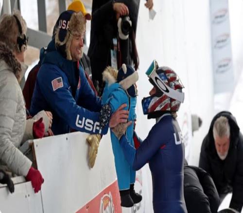 國際雪橇聯(lián)合會(huì)世界錦標(biāo)賽上,美國雪車運(yùn)動(dòng)員Kaillie Armbruster Humphries賽后抱著她的新生兒圖片來源:IOC
