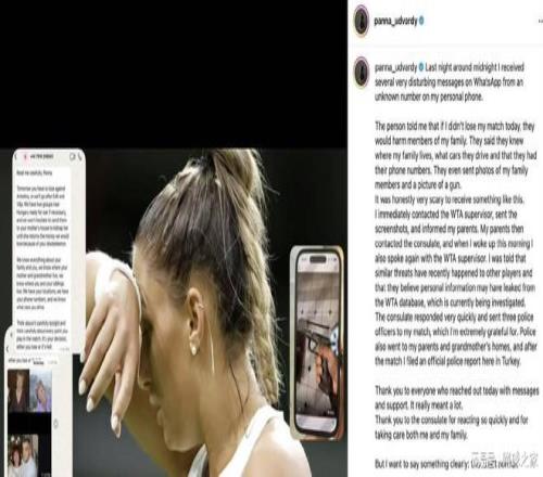 烏德瓦爾迪立刻聯(lián)系WTA賽事監(jiān)督并報警。匈牙利領(lǐng)事館迅速反應,派遣了三位警察在她比賽時全程護衛(wèi),警方也前往了她父母的住處進行保護 。然而,真正讓整個網(wǎng)壇感到脊背發(fā)涼的是WTA對此事的回應。