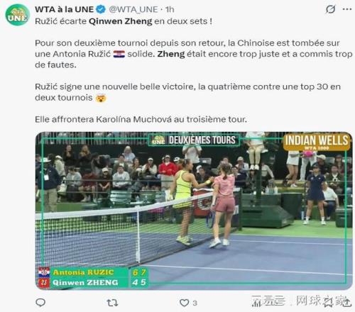 不過,歐洲一些媒體對鄭欽文輸球的態(tài)度則明顯溫和多了,直言鄭欽文因狀態(tài)不佳和過多失誤提前被淘汰,有些遺憾。