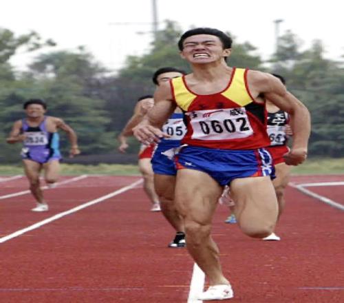 2004年,上海選手唐寶軍(前)在全國第七屆大學(xué)生運(yùn)動(dòng)會(huì)男子乙組800米的決賽中,以1分49秒21的成績,打破1分50秒41的大運(yùn)會(huì)紀(jì)錄,獲得金牌。