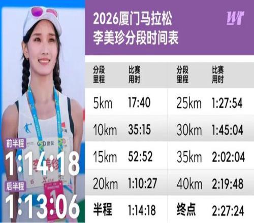 兩個(gè)半月后,再度站上錫馬賽道,李美珍又一次嘗到了負(fù)分割戰(zhàn)術(shù)的甜頭,如愿以償以2:27:51實(shí)現(xiàn)了個(gè)人生涯最重要的突破之一,她也收獲了更多的信心。回顧這一整年,李美珍發(fā)揮很是穩(wěn)定,在全馬、半馬、10公里和5公里這些項(xiàng)目上均刷新PB,并且將好狀態(tài)延續(xù)到了2026年初的廈馬。對于她在廈馬的表現(xiàn),唐寶軍坦言有點(diǎn)超乎他的預(yù)期,“但反過來說,她能跑出來也是合情合理的,其實(shí)就是高原夏訓(xùn)的效應(yīng)還在持續(xù)”。李美珍則表示在卸下全運(yùn)會(huì)的壓力后,自己的身心都更松弛,也有利于取得好成績。