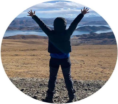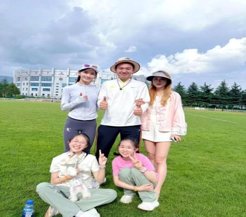李美珍在麗江體育場和唐寶軍及其家人合影