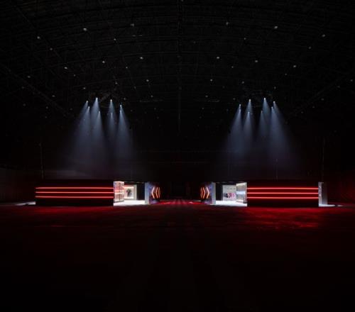 隨引擎轉(zhuǎn)速帶動(dòng)心跳節(jié)奏,運(yùn)動(dòng)員帶領(lǐng)兩百名來(lái)自不同行業(yè)和社群的跑者開(kāi)啟沖刺跑實(shí)驗(yàn)。跑者的步頻與心率數(shù)據(jù)在大屏幕上實(shí)時(shí)跳動(dòng),驅(qū)動(dòng)現(xiàn)場(chǎng)燈光與音樂(lè)同步變幻,每一位跑者的BPM都成為這場(chǎng)實(shí)驗(yàn)的律動(dòng)脈搏。當(dāng)跑者集體心率達(dá)到預(yù)設(shè)閾值時(shí),競(jìng)速美學(xué)音樂(lè)舞臺(tái)自動(dòng)觸發(fā),心跳與節(jié)拍同頻共振,將“速度”升華為可聽(tīng)、可見(jiàn)、可感的藝術(shù)。