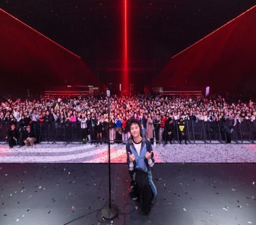 當(dāng)心跳與節(jié)拍觸發(fā)競(jìng)速舞臺(tái),先鋒音樂(lè)人竇靖童攜以“速度”為靈感創(chuàng)作的全新作品《Illumination》,于現(xiàn)場(chǎng)完成全球首發(fā)。她以獨(dú)特的電子律動(dòng),拆解著外在節(jié)奏與內(nèi)心頻率的對(duì)抗,將跑步的步頻節(jié)奏與賽車(chē)極速的張力轉(zhuǎn)化為音樂(lè)語(yǔ)言,把高樓林立的城市景觀(guān)與內(nèi)心的流動(dòng)速度織成詩(shī)篇。伴隨著電子節(jié)拍,竇靖童帶領(lǐng)全場(chǎng)觀(guān)眾互動(dòng)跳躍,構(gòu)成這場(chǎng)“競(jìng)速實(shí)驗(yàn)”里共同跳動(dòng)的脈搏。