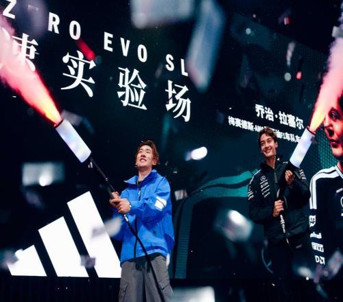 喬治·拉塞爾與蘇翊鳴破圈聯(lián)動(dòng),聯(lián)袂登場(chǎng)。拉塞爾駕駛AMG跑車(chē)以標(biāo)志性“甜甜圈”漂移震撼開(kāi)場(chǎng),用引擎轉(zhuǎn)速與轟鳴點(diǎn)燃全場(chǎng)脈搏;隨后二人于舞臺(tái)上圍繞“速度”主題展開(kāi)互動(dòng),以趣味橫生的問(wèn)答加深彼此交流,跨界演繹“只有adidas才能拉起的速度”,宣告競(jìng)速實(shí)驗(yàn)正式開(kāi)啟。