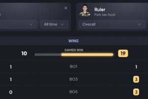 尺一GALA職業(yè)生涯對(duì)陣Ruler僅贏下一場(chǎng)BO1與一場(chǎng)BO3
