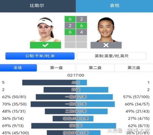 可是大家期待的這個畫面并沒有出現(xiàn),袁悅不知道是慢熱,還是沒休息好,完全找不到比賽的節(jié)奏,然后便以2比6迅速交出了第一盤的勝利。