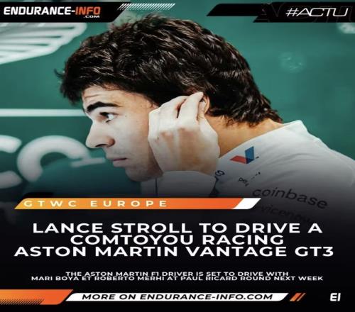 這并非是斯特羅爾的耐力賽首秀,此前他曾參加過(guò)兩次戴通納24小時(shí)耐力賽。由于4月F1兩站賽事取消,斯特羅爾趁著這個(gè)意外出現(xiàn)的休賽期,將參加個(gè)人的首場(chǎng)GT賽事。戴通納賽事和GT賽事所使用的車(chē)型不同,前者使用的是原型車(chē),這一次斯特羅爾將駕駛由Comtoyou車(chē)隊(duì)運(yùn)營(yíng)的阿斯頓?馬丁Vantage GT3賽車(chē)。