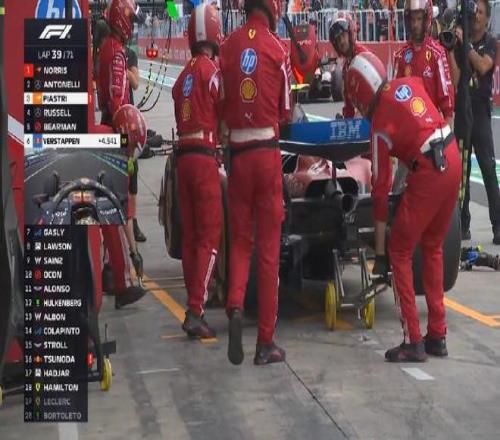 第三十一圈:領(lǐng)跑的諾里斯進(jìn)站,出站后處在P4的位置上