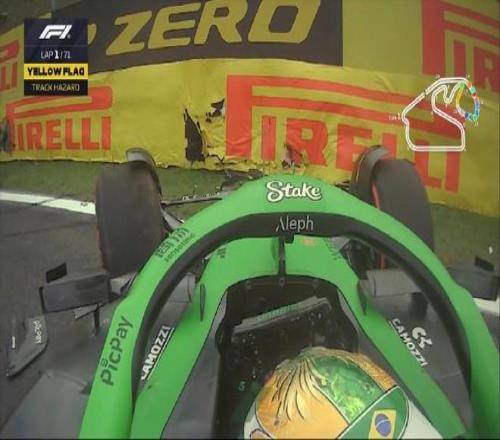 博托萊托被斯特羅爾擠到賽道邊緣,隨后撞墻,安全車出動(dòng)