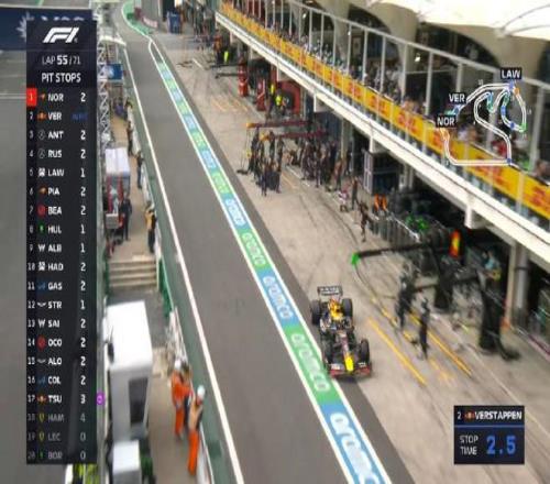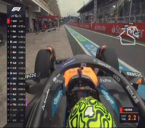 第五十一圈:諾里斯二停,維修區(qū)起步的維斯塔潘暫時(shí)領(lǐng)跑