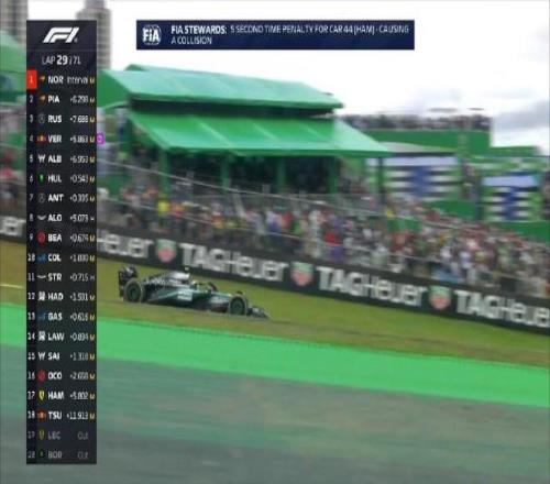 漢密爾頓因引發(fā)與科拉平托的碰撞被罰5秒