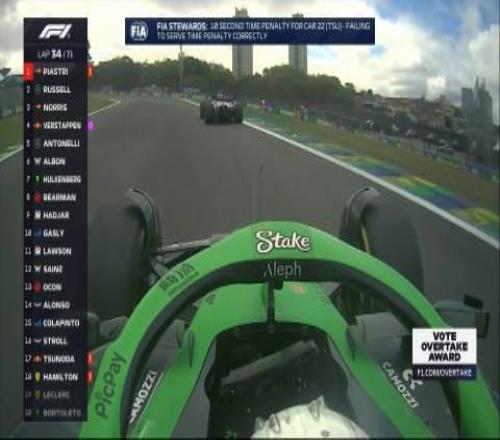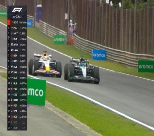 第十二圈:拉塞爾超越哈賈爾,貝爾曼超越勞森,角田裕毅因引發(fā)與斯托爾的碰撞被罰10秒
