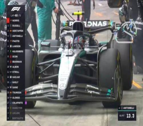 第四十八圈:安東內(nèi)利從P2位置二停,換上另一套中性胎后出站落在P6