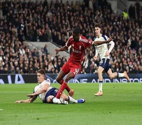 這是薩拉赫離隊出戰(zhàn)非洲杯后的利物浦第一戰(zhàn),意義相當重大。上一輪梅開二度的?;倏耸装l(fā)出戰(zhàn),伊薩克則替補待命。開場之后,主場作戰(zhàn)的熱刺就犯規(guī)不斷。第4分鐘,?;倏吮凰古硭勾虻矫娌客纯嗟沟?,8分鐘后麥卡利斯特被庫杜斯撞翻在地,裁判吹罰犯規(guī)但并沒有出牌。而在第33分鐘,哈維西蒙斯踩踏同為荷蘭國腳的范戴克小腿,主裁判在VAR確認之后出示紅牌,熱刺少打1人。1分鐘后,穆阿尼又踩踏科爾克茲,這一次主裁判只是示意犯規(guī)。半場結(jié)束,雙方0-0握手言和。