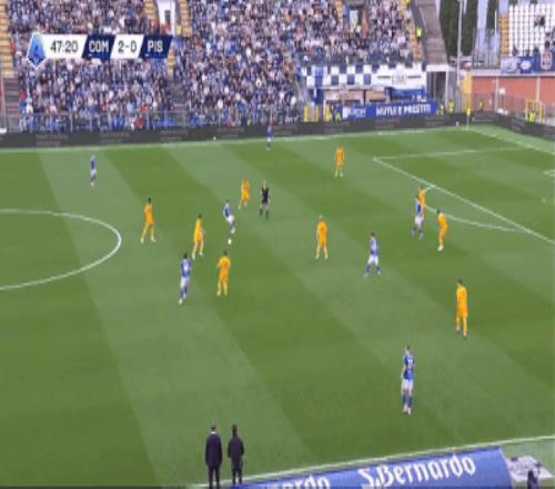 整場比賽下來,比薩7次射門無一射正,而科莫?jiǎng)t用14次射門換來5粒進(jìn)球,進(jìn)攻效率堪稱恐怖??厍蚵矢歉哌_(dá)73%+全場壓制,法布雷加斯的戰(zhàn)術(shù)體系全面開花。在中場區(qū)域?qū)Ρ荣惞?jié)奏的掌控近乎完美。法布雷加斯打造的短傳滲透+高位壓迫體系,讓比薩幾乎沒有喘息空間。