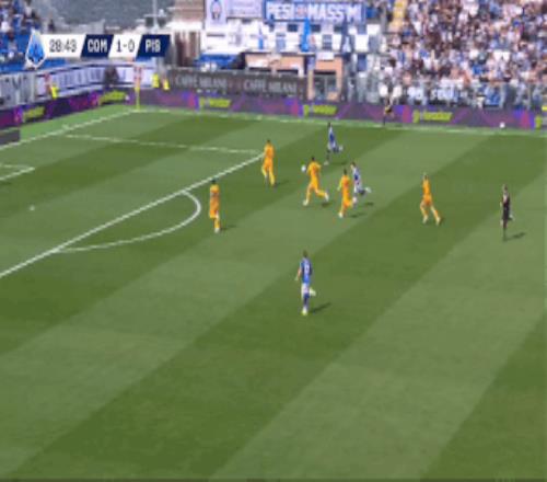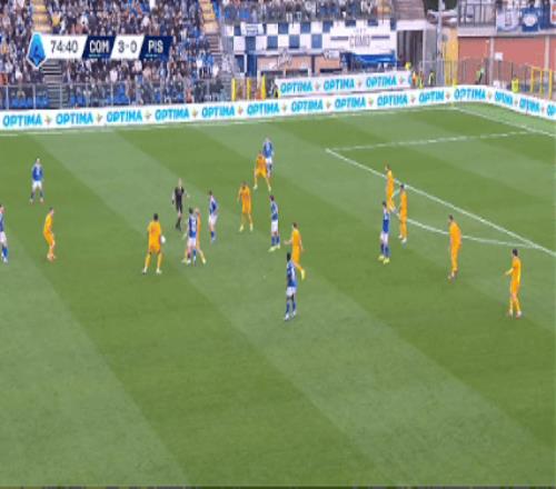 第75分鐘,莫雷諾助攻尼科·帕斯推射再下一城,科莫4-0。