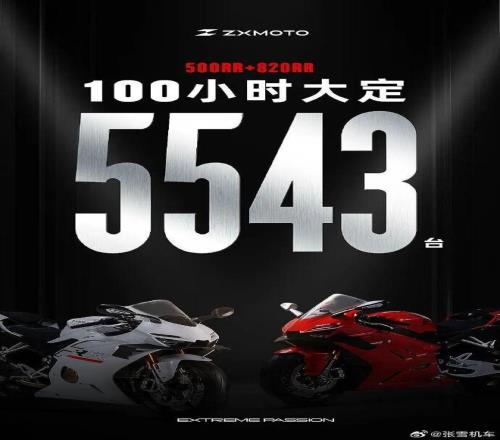 2026年3月,張雪機(jī)車(chē)公布了一個(gè)數(shù)字:500RR和820RR兩款車(chē)型,在限時(shí)100小時(shí)的大定活動(dòng)中,累計(jì)訂單超過(guò)5500臺(tái),創(chuàng)下了國(guó)產(chǎn)中排量仿賽車(chē)型的預(yù)訂紀(jì)錄。