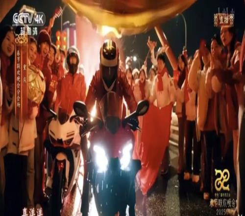 2025年央視春晚重慶分會(huì)場(chǎng),身披紅綢的張雪機(jī)車(chē)500RR疾馳駛過(guò)千廝門(mén)大橋,成為了數(shù)十年來(lái)首次登上央視春晚的摩托車(chē)品牌。