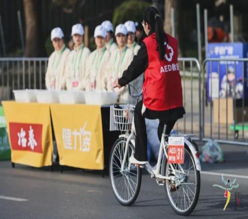 揚(yáng)州半馬的這份“懂跑者”不僅體現(xiàn)在他們提供的裝備上,還展現(xiàn)在賽事保障和服務(wù)的細(xì)節(jié)里——賽道沿途科學(xué)布局4個(gè)補(bǔ)給站、3個(gè)飲水用水站、4個(gè)食品供應(yīng)站,補(bǔ)給物資充沛充足、補(bǔ)給流程高效有序;沿線布設(shè)35個(gè)醫(yī)療救護(hù)站,24組騎行AED小組不間斷流動(dòng)巡護(hù),66臺(tái)AED設(shè)備全域覆蓋、一鍵護(hù)航。200余名專業(yè)醫(yī)護(hù)人員與685名醫(yī)療志愿者時(shí)刻在崗;4000余名公安安保力量全線布防、晝夜堅(jiān)守,牢牢守住賽道安全;211名專業(yè)裁判員全程執(zhí)裁、公正嚴(yán)明,用專業(yè)與嚴(yán)謹(jǐn)守護(hù)競(jìng)技初心,讓每一份拼搏都被尊重,每一次沖刺都有公平。