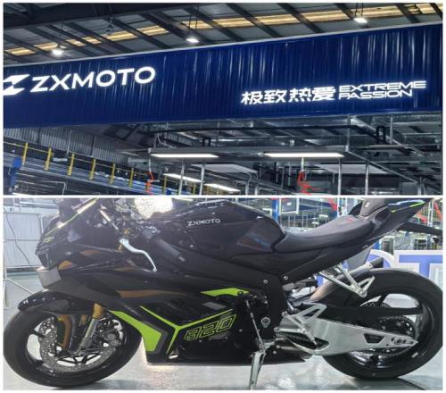 張雪機(jī)車的工廠,占地面積不大,廠房可以一眼望穿,廠里放著黑白兩色賣得最好的車型500RR(500RR是張雪機(jī)車的主力車型)。當(dāng)然,這里還有本次葡萄牙站奪冠的量產(chǎn)車原型820RR(參賽車輛型號(hào)為820RR-RS),機(jī)車上面的“ZXMOTO”噴涂格外耀眼醒目。