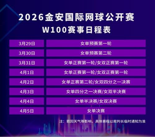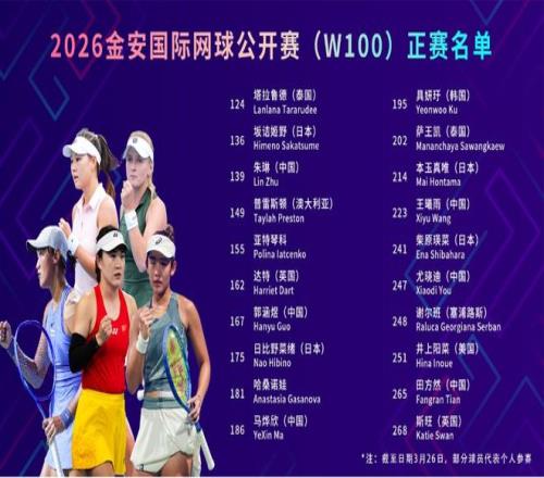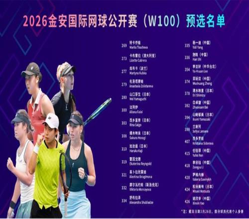 2026金安國(guó)際網(wǎng)球公開(kāi)賽(W100)球員陣容正式公布。3月29日,這項(xiàng)總獎(jiǎng)金10萬(wàn)美元、冠軍可收獲100個(gè)WTA積分的ITF高級(jí)別國(guó)際女子賽事,將在南山安徽省小球訓(xùn)練基地?fù)]拍開(kāi)賽。