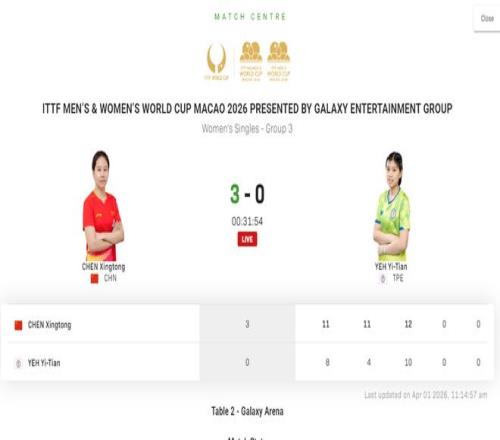 28歲的陳幸同在2026國際乒聯(lián)單打世界杯保持了穩(wěn)健的狀態(tài),她在繼小組賽第一戰(zhàn)3比0擊敗德拉戈曼之后,又在第二戰(zhàn)3比0擊敗葉伊恬,從而兩戰(zhàn)全勝出線,挺進了16強。