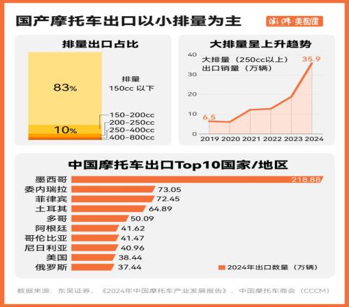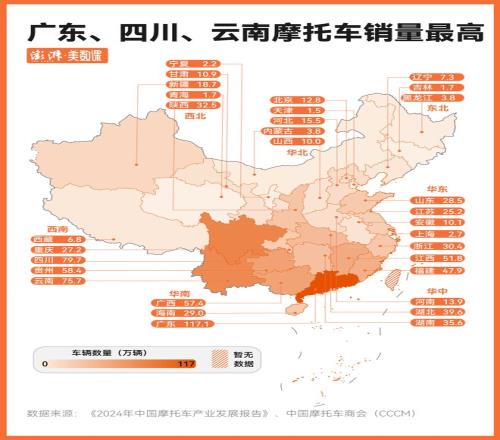 根據(jù)《2024年中國摩托車產(chǎn)業(yè)發(fā)展報告》中國的摩托車市場主要集中在東部經(jīng)濟發(fā)達省份、西南多山省份以及中西部政策寬松地區(qū)。雖然我國摩托車出口量大,但存在高端產(chǎn)品不足、大排量摩托車研發(fā)稍顯滯后、品牌溢價能力弱等短板。