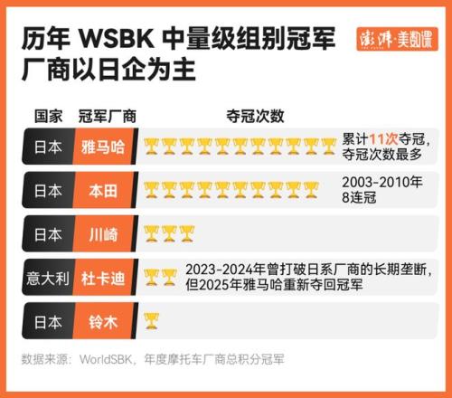 自1988年以來,WSBK中量級組別冠軍幾乎由雅馬哈、本田等日企包攬。今年的比賽將持續(xù)到10月,共12場,后續(xù)還將轉(zhuǎn)戰(zhàn)荷蘭、匈牙利、捷克等國家和地區(qū),最終根據(jù)車手、制造商積分進行排名,截至目前,德比斯在車手積分榜上位列第三,張雪機車暫未進入制造商積分排行榜。