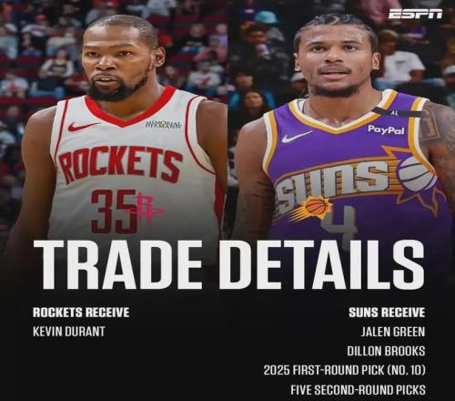 去年夏天休賽期,火箭送出杰倫格林+狄龍+25屆首輪第十號簽(馬盧阿奇)+5個(gè)次輪簽,從太陽挖來杜蘭特。