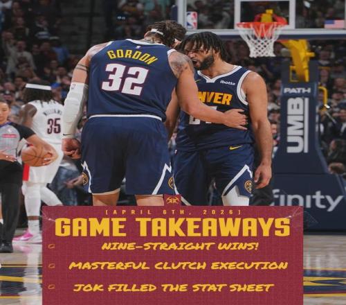 北京時間4月7日,NBA常規(guī)賽,掘金加時137-132力克開拓者,掘金豪取9連勝。此役過后,掘金51勝28負升至西部第三,湖人50勝28負跌至西部第四。明天湖人打雷霆,如果湖人獲勝將奪回西部第三,否則的話只能在第四待著了。