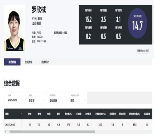今年25歲的羅欣棫已經(jīng)在WCBA打了7個(gè)賽季,場(chǎng)均26.6分鐘,拿到14.5分5.2籃板2.6助攻1.1搶斷0.4蓋帽,命中率46.4%,三分命中率31.8%。羅欣棫已經(jīng)算是聯(lián)賽的頂級(jí)3D鋒線了。