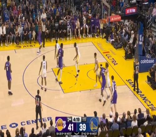 ——第二節(jié)剩下4分鐘前,布朗尼又連拿4分1助攻,不到一分鐘時間,幫助湖人將比分從41-39改寫成48-39