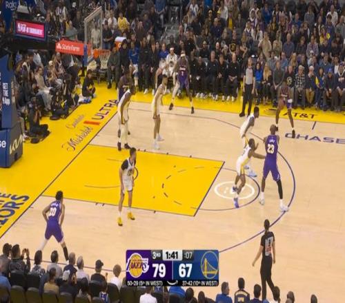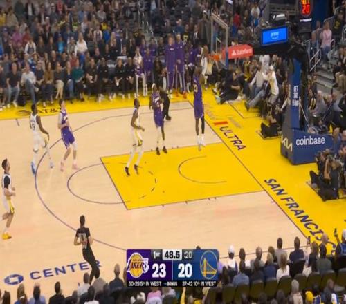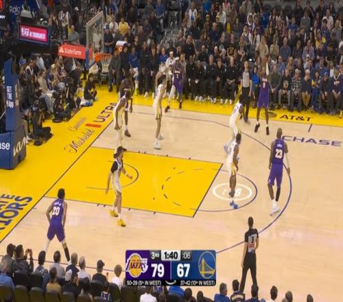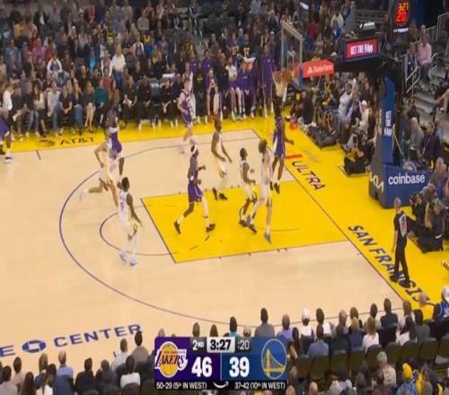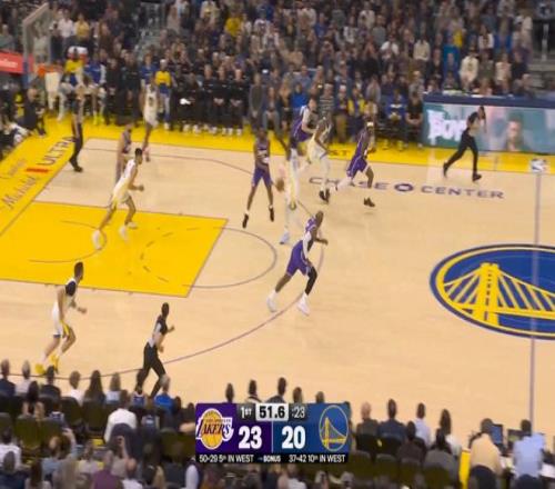 其中第一節(jié),詹姆斯就單節(jié)7中5,拿下了12分,期間幾次打成背打和三分;三節(jié)結束時,詹姆斯已經(jīng)得到20分4籃板6助攻,湖人也以82-73領先勇士。