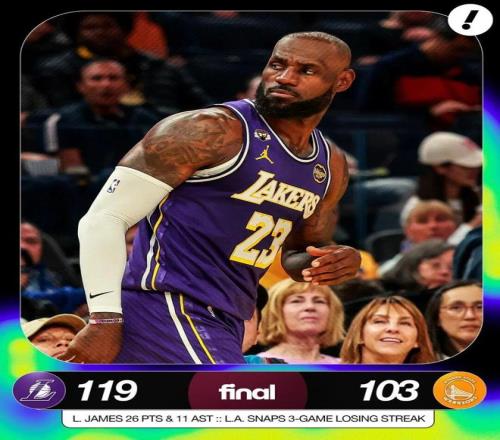 常規(guī)賽,湖人客場119-103戰(zhàn)勝勇士。