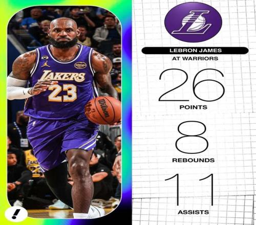 這場比賽,東契奇、里夫斯、斯馬特等人缺席,然后41歲的詹姆斯接管了比賽:全場出戰(zhàn)32分鐘,投籃17中11,三分5中3,罰球2中1,得到26分8籃板11助攻2搶斷1蓋帽,正負值高達+19。