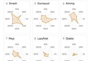 電競(jìng)體育4月11報(bào)道 近日,有國外粉絲制作了4月10日前LCK聯(lián)賽的選手?jǐn)?shù)據(jù)雷達(dá)圖,其中下路選手中Taeyoon的數(shù)據(jù)較為可觀,而第一賽段發(fā)揮出色的Diable則有些“泯然眾人”,最值得在意的是deokdam的數(shù)據(jù)圖,僅呈現(xiàn)一個(gè)冒號(hào)!