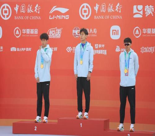 王文杰(中)北京半馬奪冠。新京報記者 王飛 攝